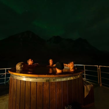 Hot Tub: One of our favorite features on board the vessel is the hot tub out on deck. It is the perfect place to warm up after a day of exploring the Arctic. If you’re lucky, you might even spot the northern lights!