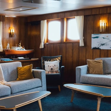 Lounge: The lounge is the central meeting place on board. This is where you’ll attend lectures, enjoy an afternoon snack, or catch up with your fellow expeditioners during the evening.