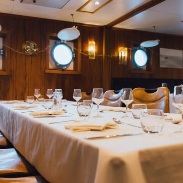 Mealtimes will be announced and may shift with changes in the day’s schedule. Breakfast and lunch are served buffet style, while dinner is plated at the table. Meals often feature freshly caught seafood prepared by the chef, using anything the crew harvests during the journey. Please let us know of any dietary requirements or allergies so we can inform the kitchen.
