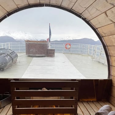 Sauna: Step into the panoramic sauna on the aft dekc for a wellness experience unlike any other. While you’re heating up, the large window gives you great views over the surrounding landscape.