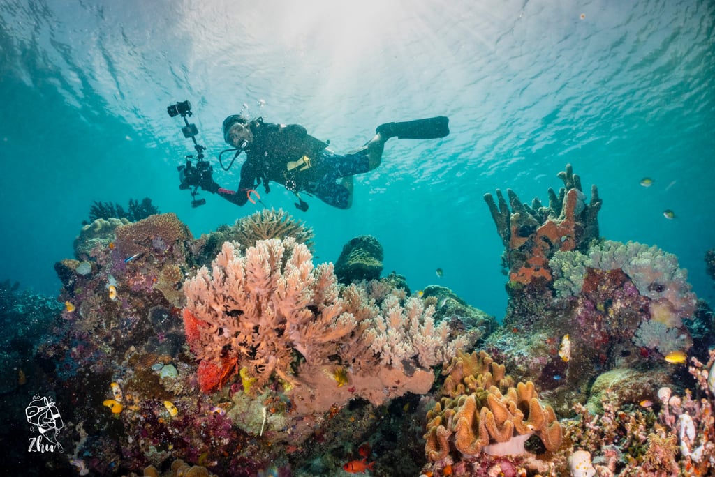 Dives (3): My Reef (schooling hotspot), Melissa’s Garden (hard coral explosion), Batu Rufus (reef scape and swim through, Coral Garden)