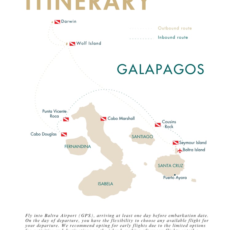 The islands host a high number of endemic species, including the marine iguana, Galápagos penguin, and flightless cormorant. Marine life is equally rich due to the convergence of major ocean currents—the warm Panama Current, cold Humboldt Current, and deep Cromwell Current—which bring nutrient-rich waters that support large populations of pelagic species. Strict conservation laws and limited tourism help protect this UNESCO World Heritage Site, with access tightly regulated by the Galápagos National Park Directorate. Divers must follow rules to minimize environmental impact, as even small disruptions can affect the fragile balance of these unique ecosystems.