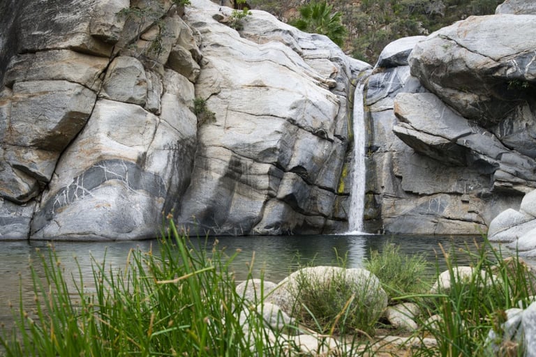 Also known as Fox Canyon, it is a secluded natural oasis in Baja California Sur, Mexico. It's a hidden gem that features a short hiking trail through the desert, waterfalls, and crystal-clear pools.