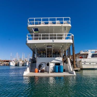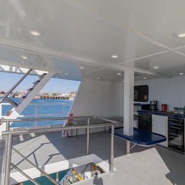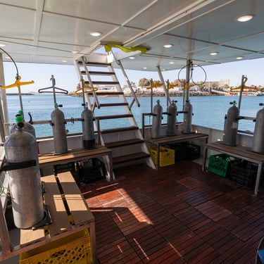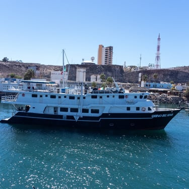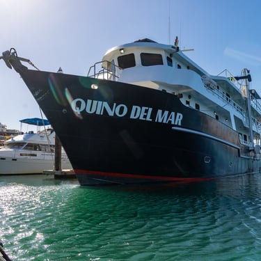 The Quino del Mar is a newly built 36-meter, steel-hulled liveaboard designed specifically for divers, offering outstanding comfort, safety, and stability with its solid construction and built-in stabilizers. It accommodates up to 20 guests in 10 air-conditioned ensuite staterooms, each equipped with a double bed and twin bunk. Onboard, guests enjoy a spacious salon and dining area, plus a large, well-organized dive deck complete with a dedicated camera table for underwater photographers.