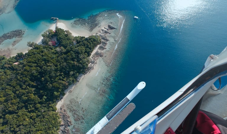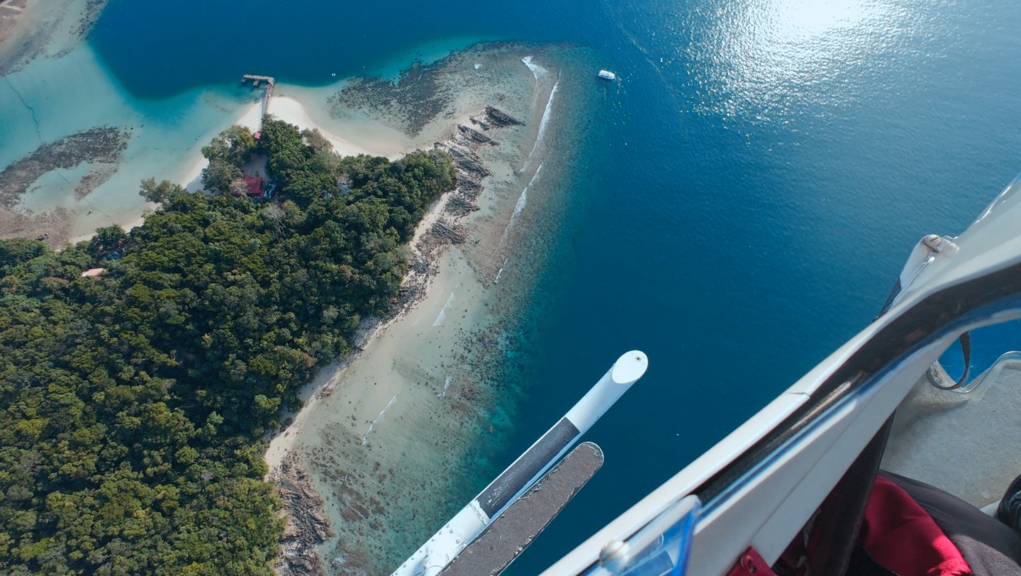 With the runway right on the coast, we began our journey over the Tunku Abdul Rahman Marine Park, where we had a bird’s-eye view of Mamutik, Sapi, Manukan, Gaya, and Sulug islands. Captain Sofia pointed out that because drones are restricted here due to the airport’s proximity, the only way to witness this perspective is by air.